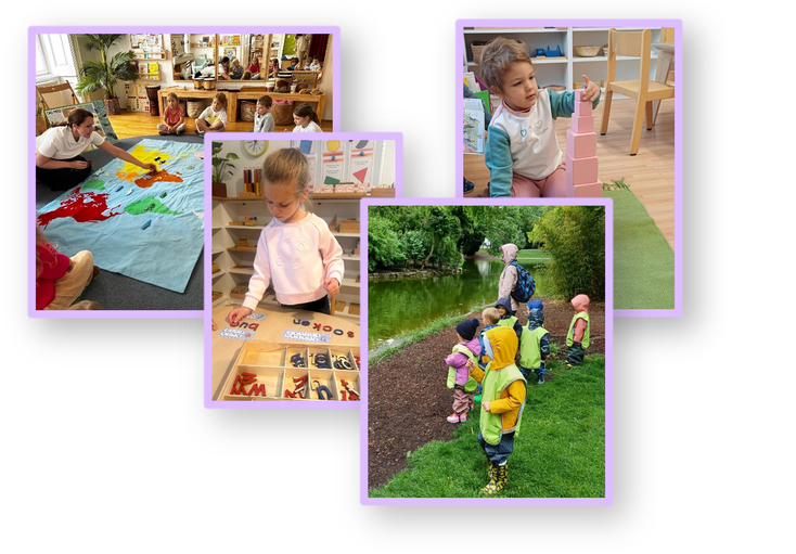 Children choose from a wide range of meaningful play opportunities: sensory exploration, construction, indoor gardening, climbing, reading corners and creative problem-solving